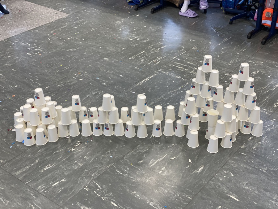 Außerdem wurde mit Teamgeist und Geschick eine beeindruckende Stadt aus 100 Pappbechern gebaut – ein echtes Gemeinschaftsprojekt!