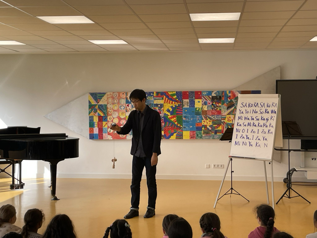 Wir hatten Besuch von drei Japanern aus Tottori. Sie waren alle sehr musikalisch und haben uns Lieder vorgesungen. Die Lieder hießen zum Beispiel "Kirschblüte" und "Summ Summ Summ".