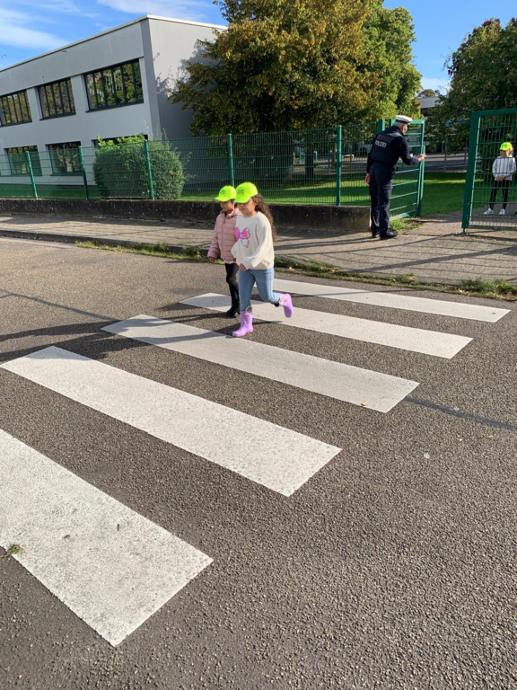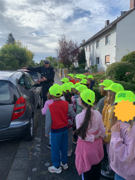 Gemeinsam mit zwei Kollegen des Polizeipräsidiums Südosthessen machten unsere ersten Klassen eine Schulwegbegehung. Hierbei übten sie das sichere Überqueren einer Straße in verschiedensten Situationen. Am Ende der Übung gab es für die Kinder einen Fußgängerausweis und ein Infoheft zum sicheren Schulweg.